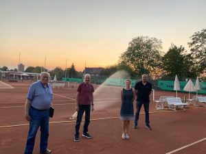 Wir bedanken uns für die Gelegenheit zu einem netten Gespräch und einer kurzen Vorführung der automatischen Bewässerungsanlage des Tennisplatzes, welche mit Hilfe des Förderprogramms “ Moderne Sportstätten 2022″ finanziert werden konnte.
